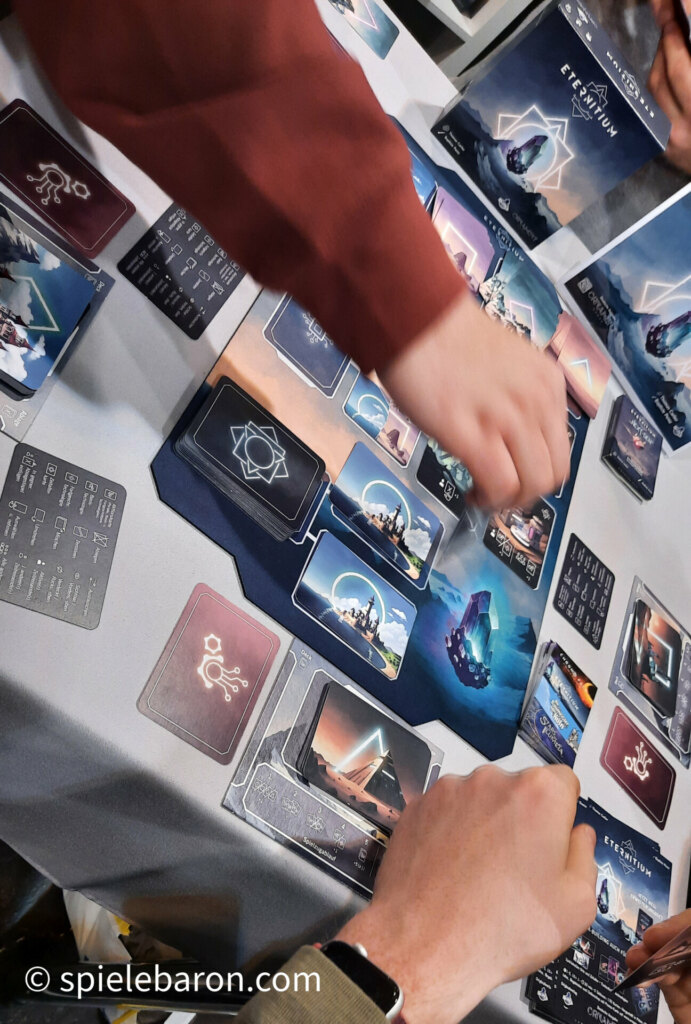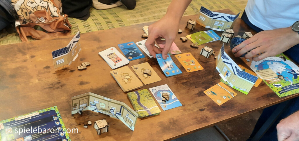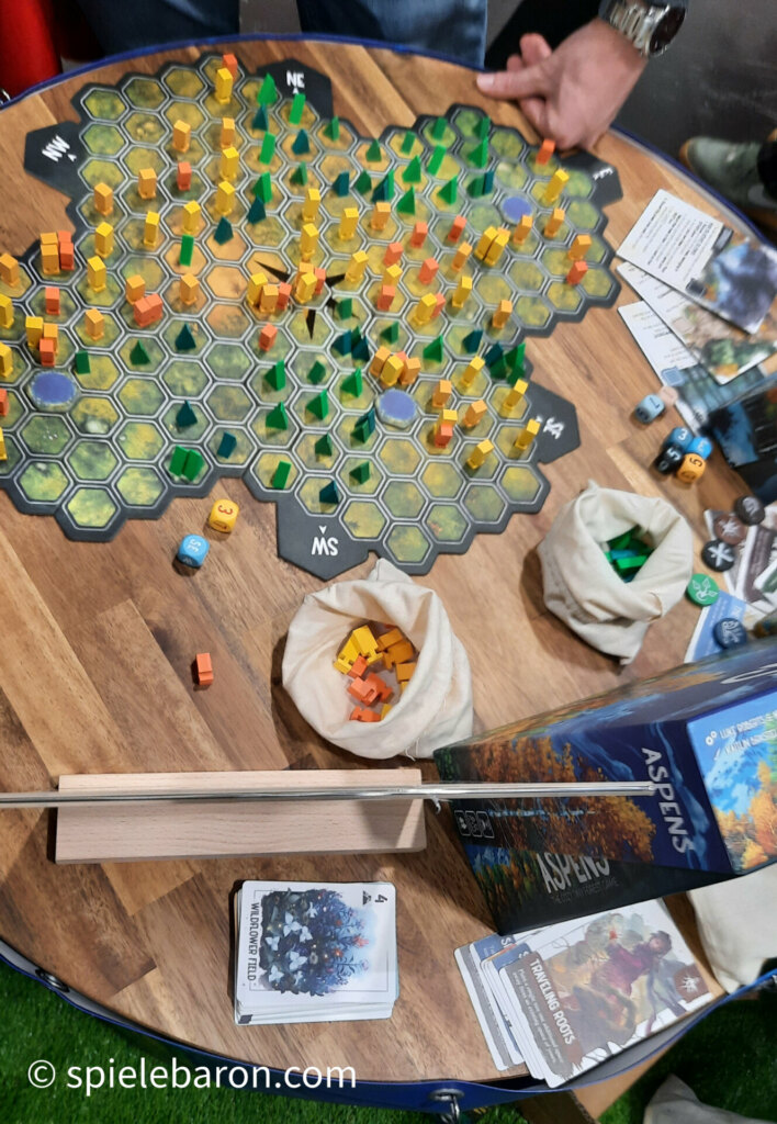 Der letzte Tag der Messe war wider Erwarten für uns der entspannteste von allen: Weniger Besucher, mehr Platz in den Gängen und mehr freie Tische zum Spielen! Selbst in Halle 3 haben wir am Sonntag gleich mehrfach Tische ergattern können, und je später es am Tag wurde, desto leichter konnte man auch einen Spieltisch mit Erklärbär erwischen.