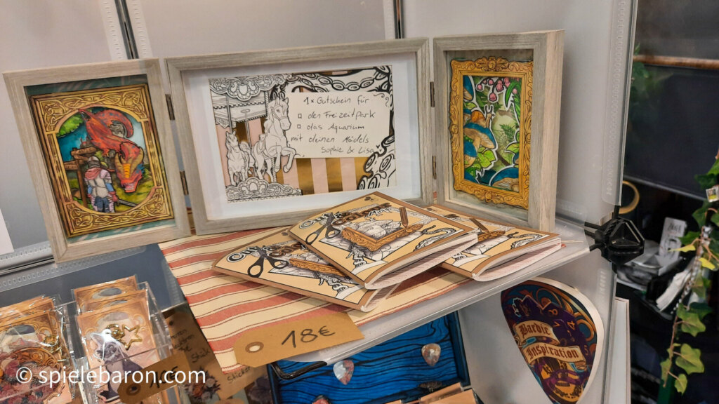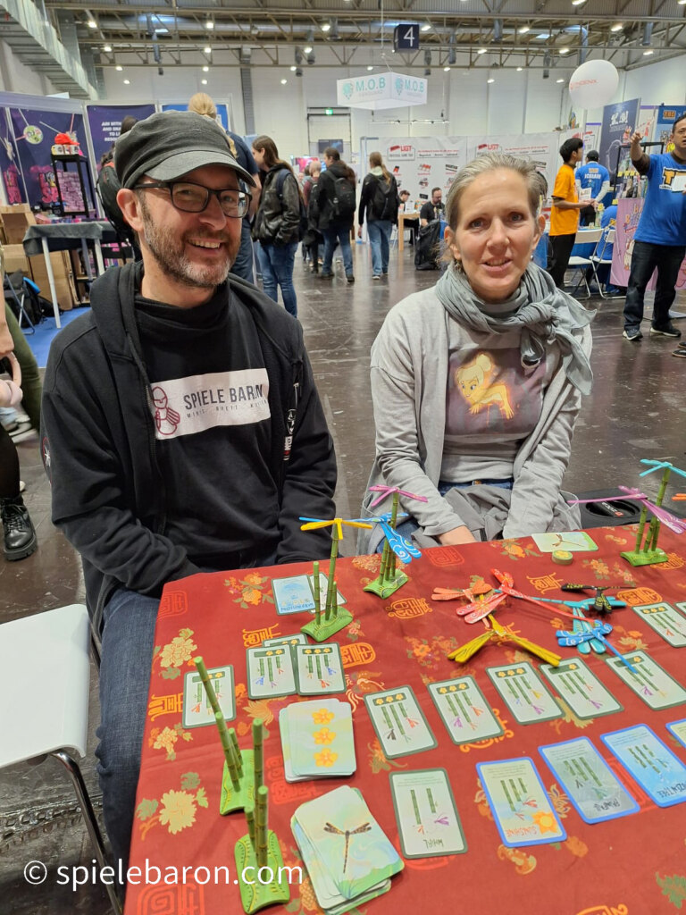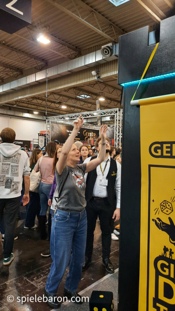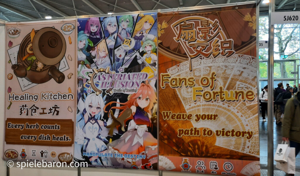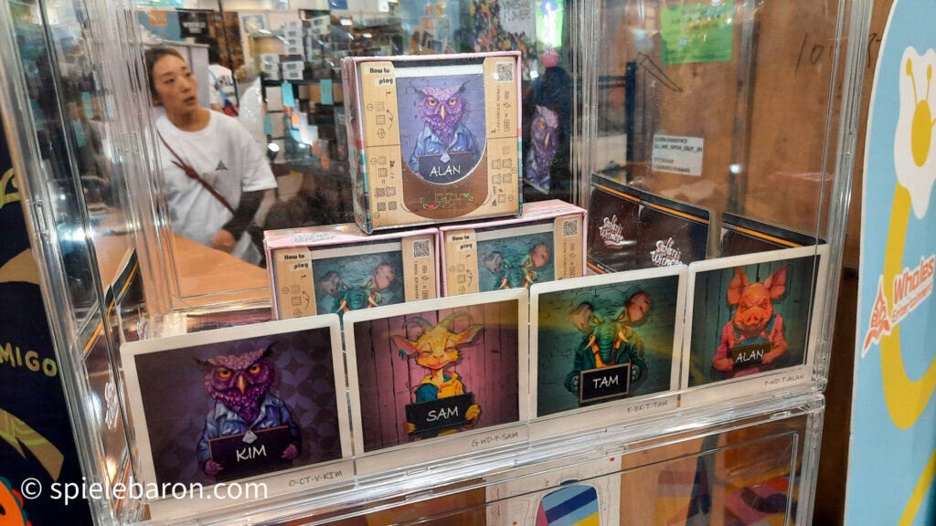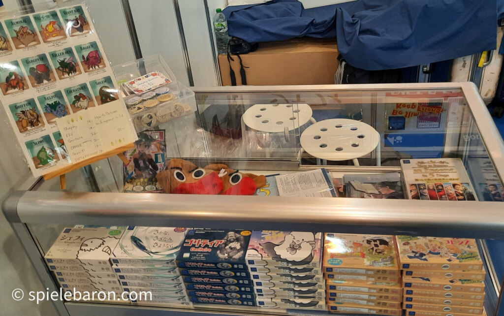 Die Spieleentwickler – extra aus einem kleinen Dorf im Norden Japans angereist, um das Wasser außerhalb Japans mal ein wenig zu testen – waren komplett überwältigt vom Interesse an ihrem kleinen Spiel! Sie waren bereits am ersten Tag komplett ausverkauft, weil sie nicht mit so viel Interesse gerechnet hatten. Die zu Tränen gerührte Standbetreiberin (alles von Familien und Freunden angetrieben und organisiert), bedankte sich während der Verlosung auch noch überschwänglich beim Publikum, das bei jedem gezogenen Los auch noch frenetisch applaudierte und sich für die Gewinner herzlich freute! Es war einfach berührend. – Auch das ist die Messe!