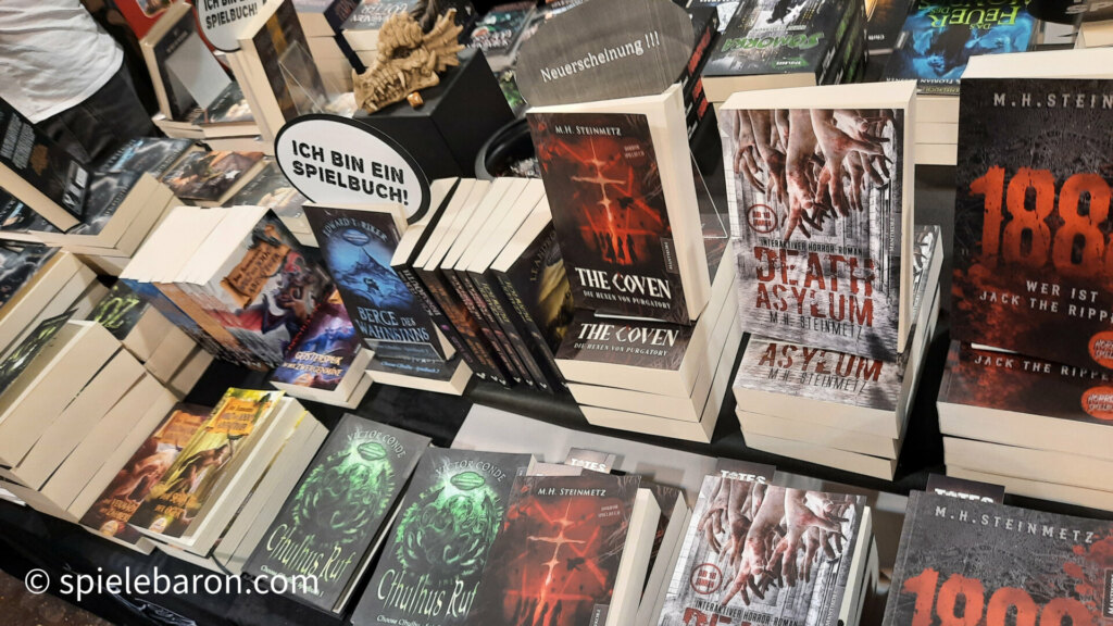 Außerdem hab ich wieder mal bei den Spielbüchern zugeschlagen, auch dafür gab´s vor allem einen coolen Stand. Neben einem Alice-im-Wunderland-Spielbuch und einem Zombie-Spielbuch habe ich dort auch Spielbuch-Comics für entdeckt: Comic, Rätsel und Spiel in einem – simpel, effektiv, und sehr lustig! (Eins davon hab ich gleich am selben Abend noch durchgespielt…)