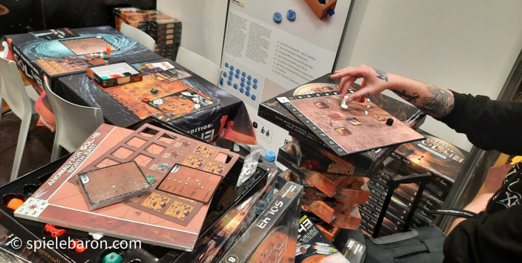 An einem Stand in Halle 3 bin aber dann doch relativ schnell durchgekommen: Mindclash Games hatten die zweite Edition von Perceverance dabei: Dieses Spiel hatte ich vor zwei Jahren schon haben wollen, und deshalb habe ich auch sofort zugegriffen.