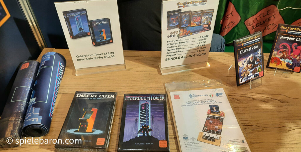 Den Versuch in Halle 3 zu den großen Verlagen zu kommen, und dort mal ein paar Spiele zu testen, musste ich wieder aufgeben: In dieser wirklich brechend vollen Halle war es kaum möglich, an die Verkaufsstände zu gelangen – überall stauten sich die Schlangen -, und Spieltische waren alle komplett besetzt.